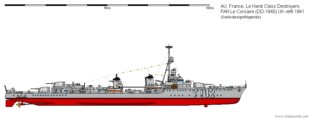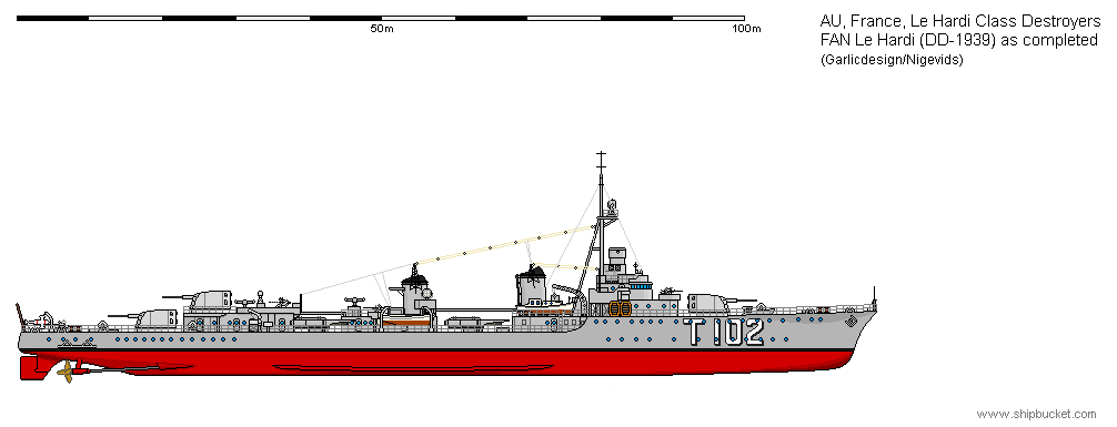 | Le Hardi | Ateliers et Chantiers de la Loire, Nantes | 20 May 1936 | 4 May 1938 | 2 June 1940 | Scuttled 27 November 1942; raised as FR37, scuttled, Genoa, 20 April 1945 |