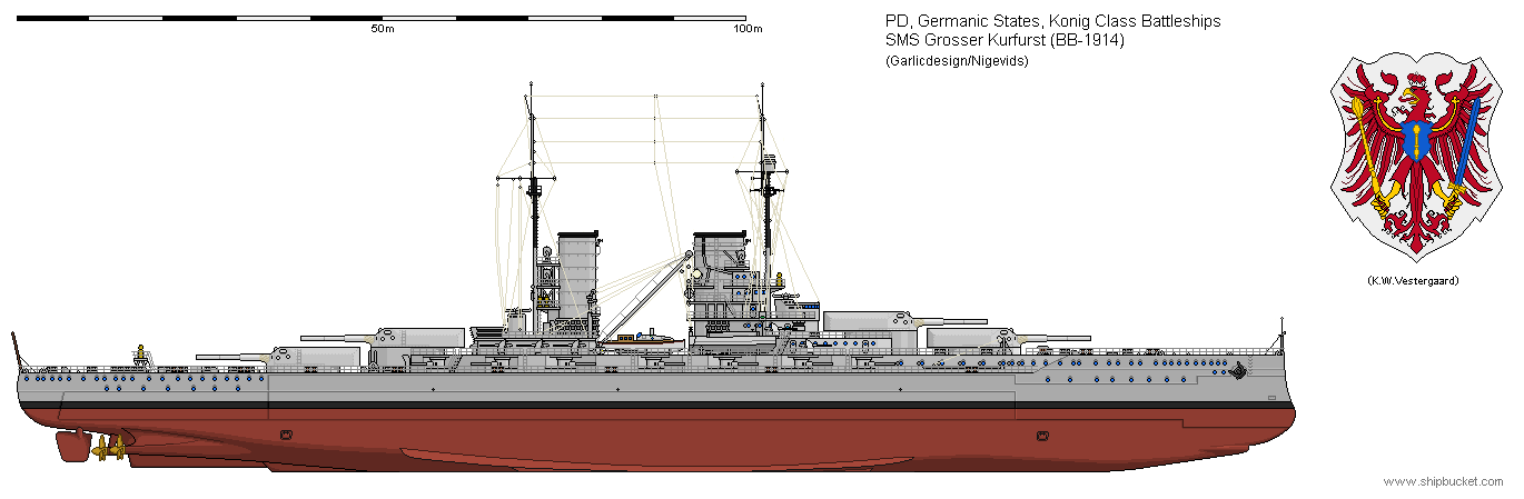 The three Kaisers, two Konig's and the Wurtemberg were the German fleets main
