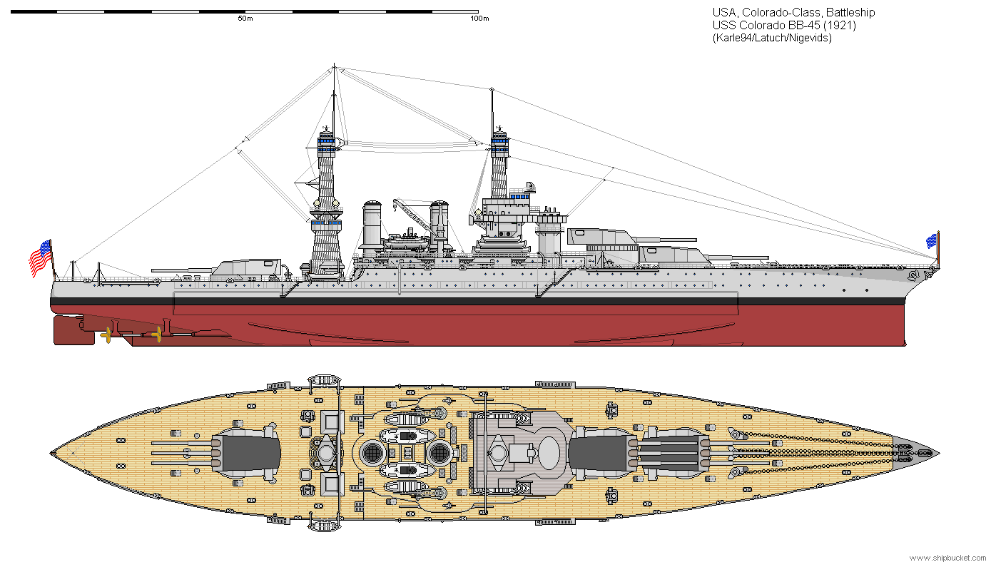 | Colorado | BB-45 | New York Shipbuilding Corporation, Camden, New Jersey | 29 May 1919 | 22 March 1921 | 30 August 1923 | 7 January 1947 | Struck 1 March 1959; Sold for scrap, 23 July 1959 |