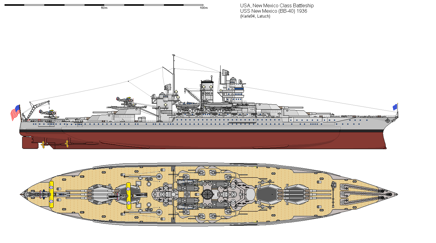 Jump to the New Mexico type up to their 1936 refit schedule, and the modern