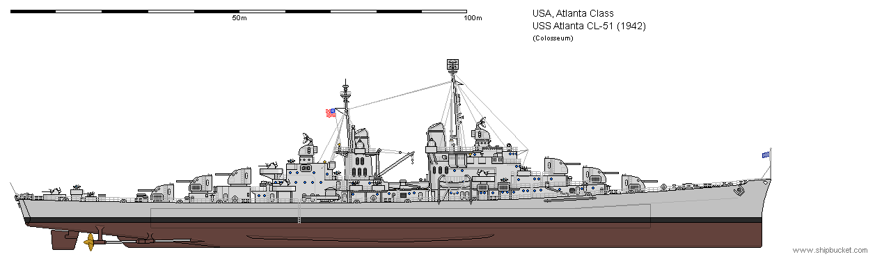 tubes. Originally designed with four sets of torpedo tubes, before the Atlanta