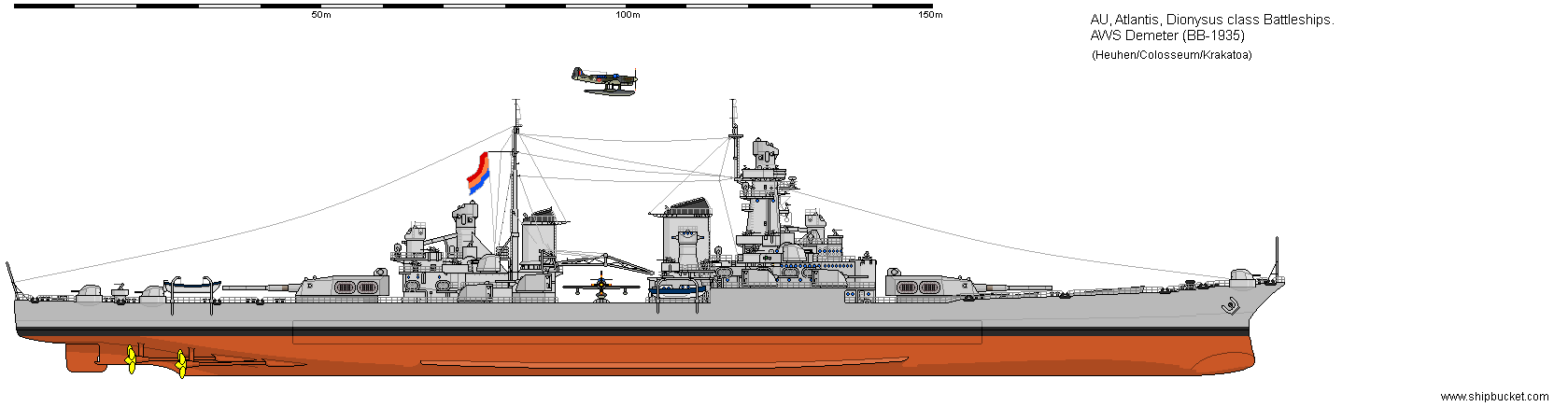 Atlanteans had the eight triple 16" turrets removed from the Athena class