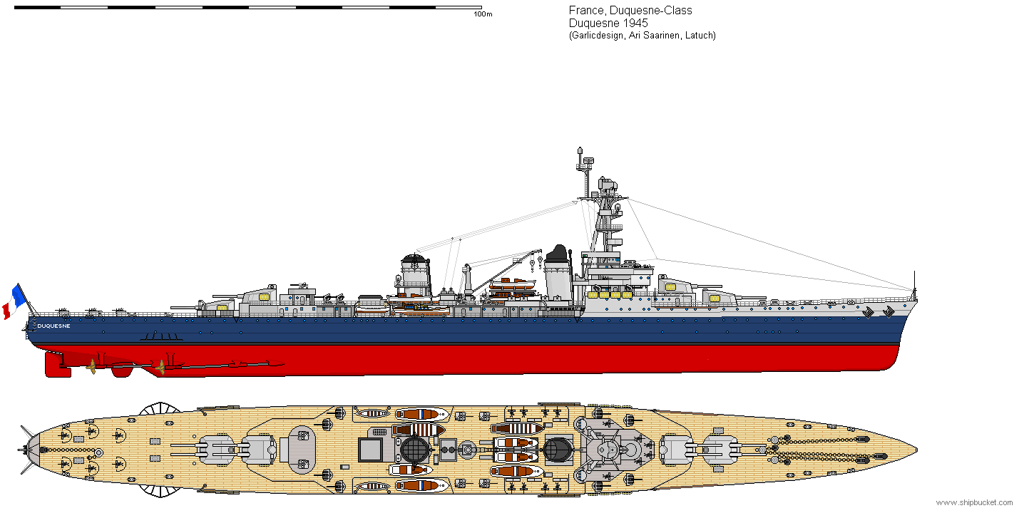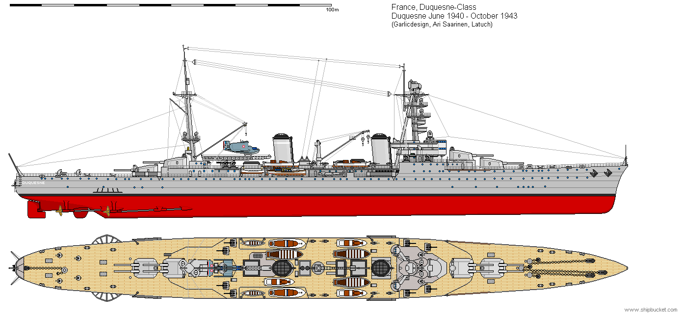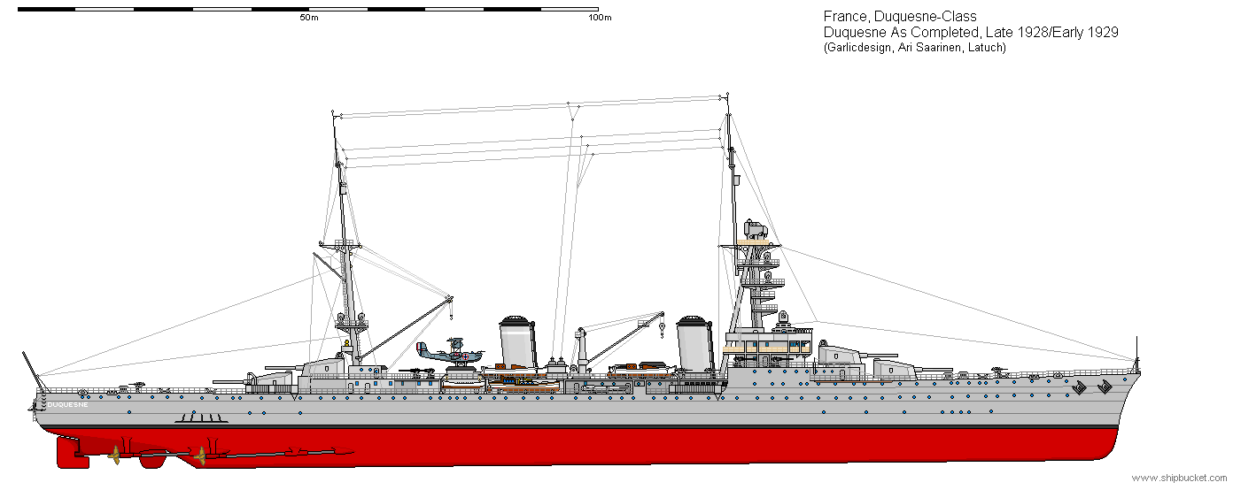 Below a Duquesne and Suffren class cruiser. Duquesne on left.