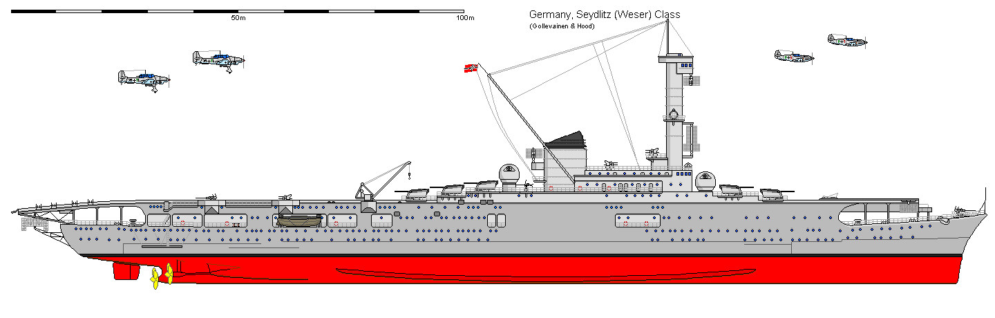 German spies (or Naval Attaches) to the various major powers, up till the outbreak of war, kept their eyes firmly on the building projects of those countries naval yards. The advent of the smaller 'escort' and 'light' carriers as shown by the British/Australis Hermes and Albatross classes was firmly in mind of the German designers. The Kriegsmarine however could find no use for the smaller carriers and their first 8 or so ships were all of the large fleet sized vessels.