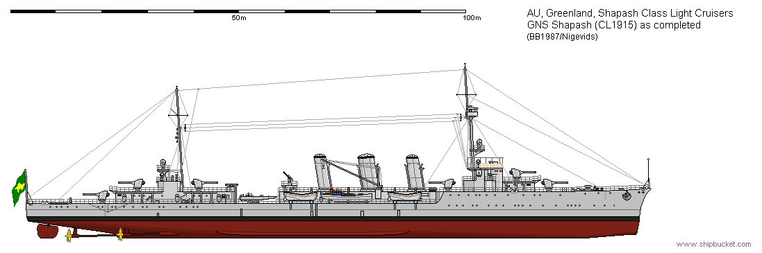The Shapash class had the previous Mago type to follow when these ships started being converted to AA cruisers from 1936 onwards. Replace the 5.5" with 5" DP guns on a one for one basis, and replace the original bridge superstructures with new ones as per the Mago. Add a few more modern AA weapons and 'hey presto' more shadows for the Melqart class CVE's and the older CVL's.