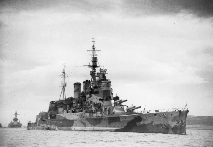 Above and Below: HMS Repulse showing triple LA 4" with single 4" AA outside B 15" turret