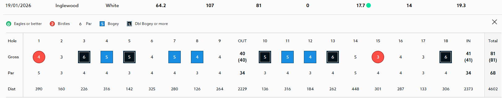 average. The highlights were the two birdies I managed on the 1st and 15th
