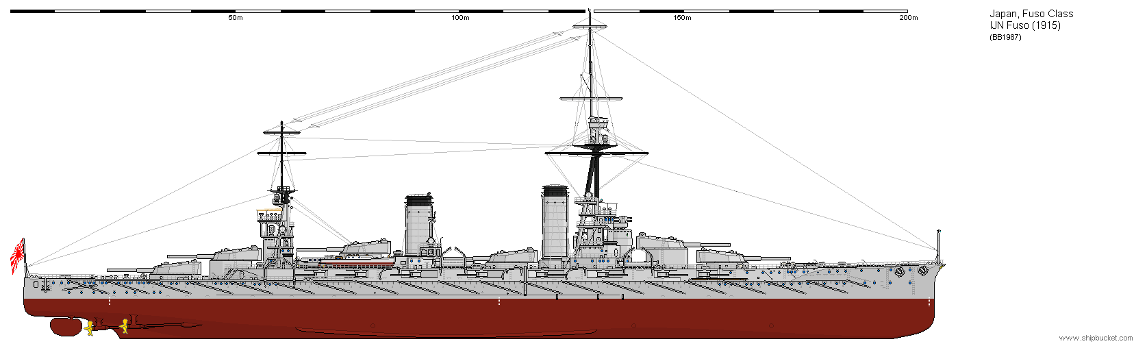 The day of the battleship had passed and what was left to them was to provide AA support to the aircraft carriers and shore bombardment duties when required. The Fuso and Yamashiro were rebuilt 1941-43 as AA escorts. This entailed the removal of the central 14" turrets (fitted to a new battlecruiser) and the fitting of as many twin 5" and 25mm AA guns as could be packed into the area provided.