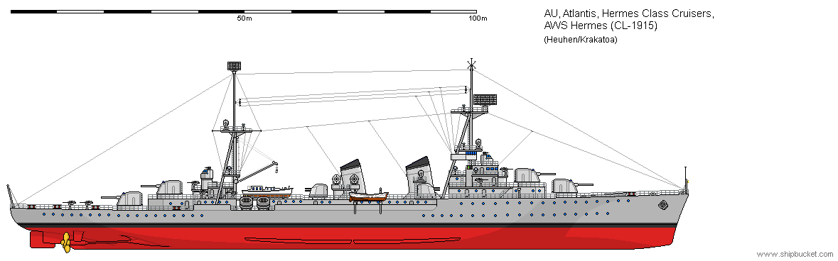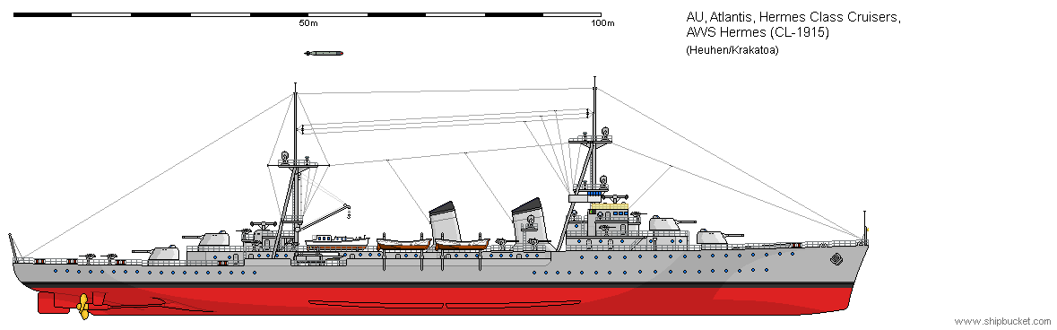 | Armament | 8 x 5.5" (4x2) 4 x 75mm AA (4x1) 10 x 25mm mod 1910 (10x1) |