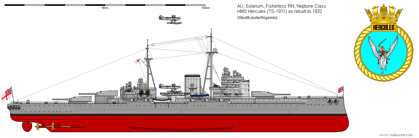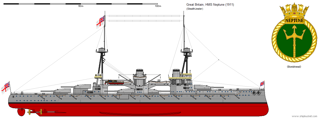 | Armour | 11" side, 2" deck, 11" turrets. (belt removed on Neptune and ADV's reduced to 3") | |||