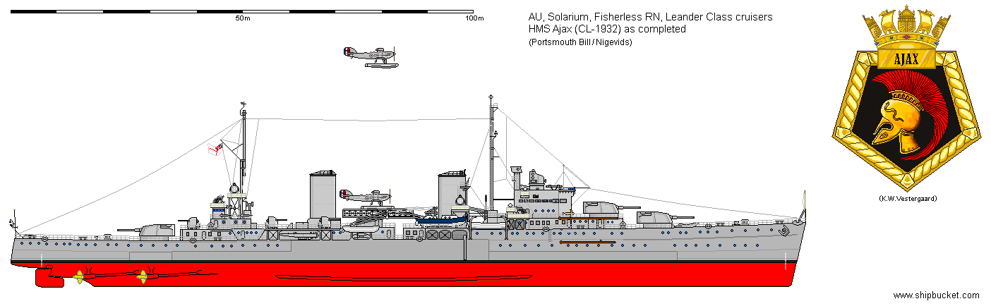 | Notes | HMS Leander HMS Amphion HMS Ajax - sunk Battle of Norwegian Sea May 1940 HMS Achilles HMS Aboukir HMS Cressy HMS Wyvern HMS Drake HMAS Hobart HMAS Sydney HMAS Greymouth HMAS Adelaide HMSAS Namaqualand HMSAS Zululand HMSAS Basutoland HMSAS Griqualand |