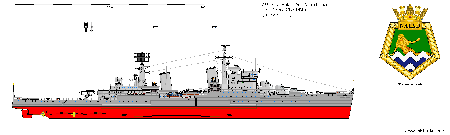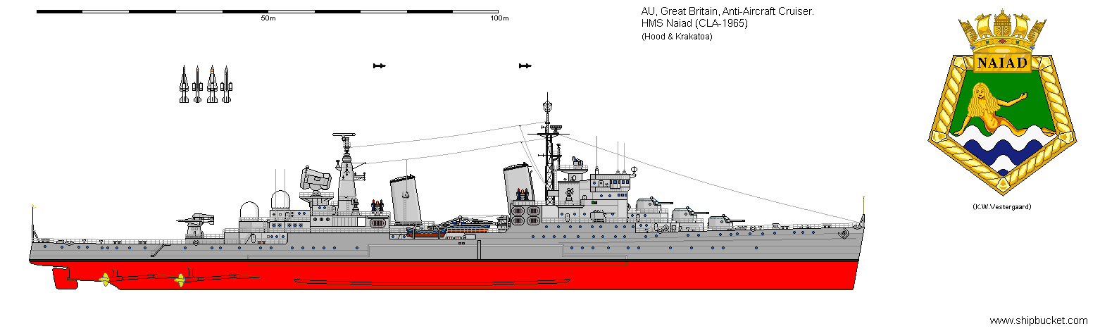 HMS Naiad was a one off Anti-aircraft cruiser built utilising the new fully
