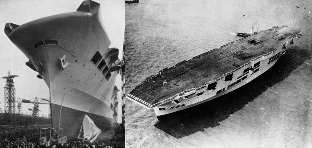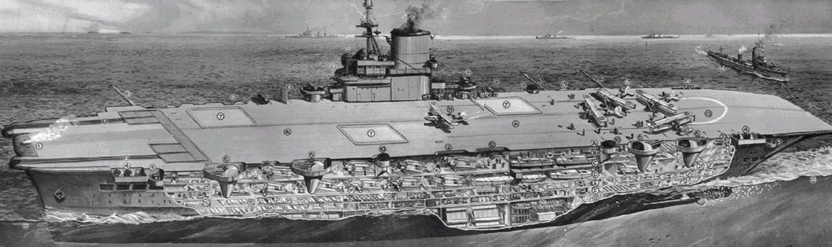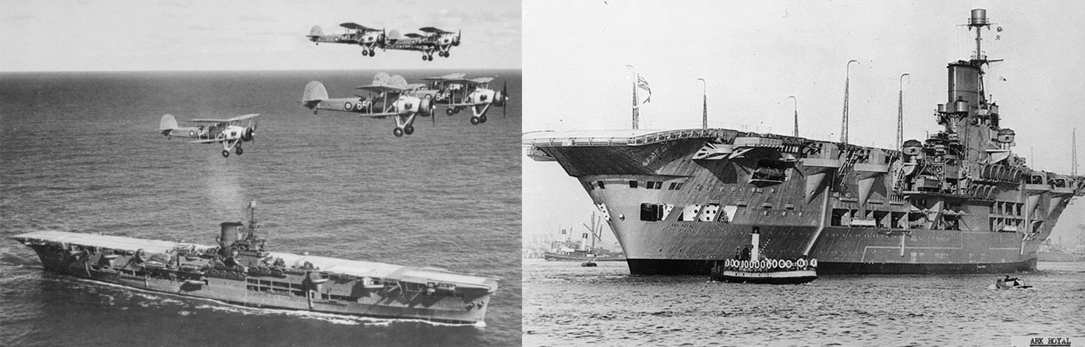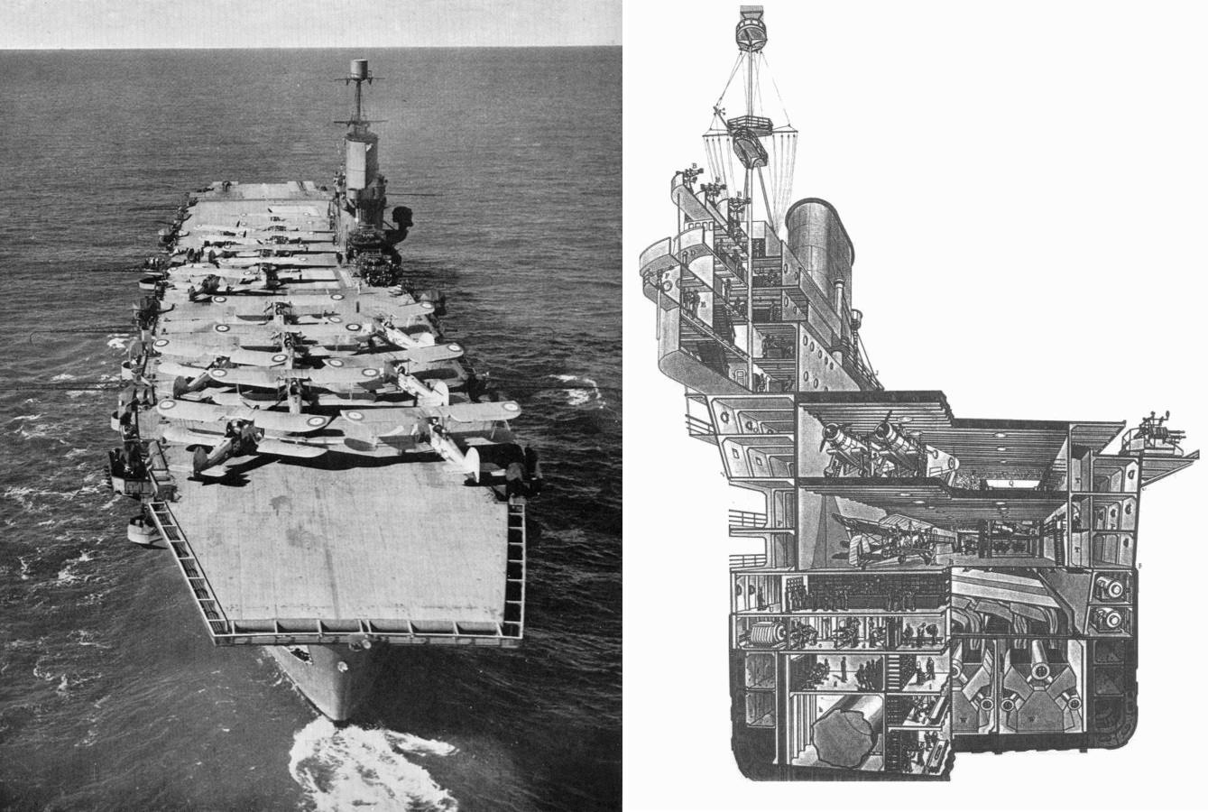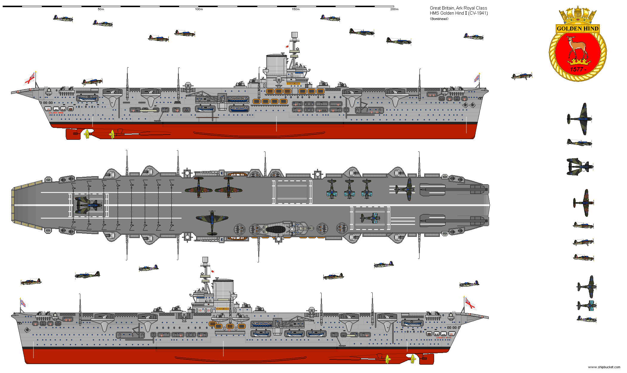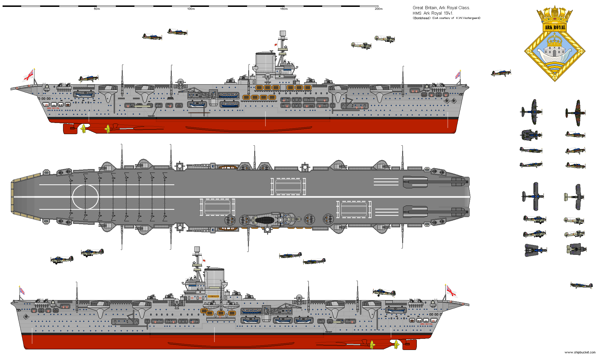 Below is the original drawing of the Ark Royal with its antiquated Swordfish and 4.5" guns.