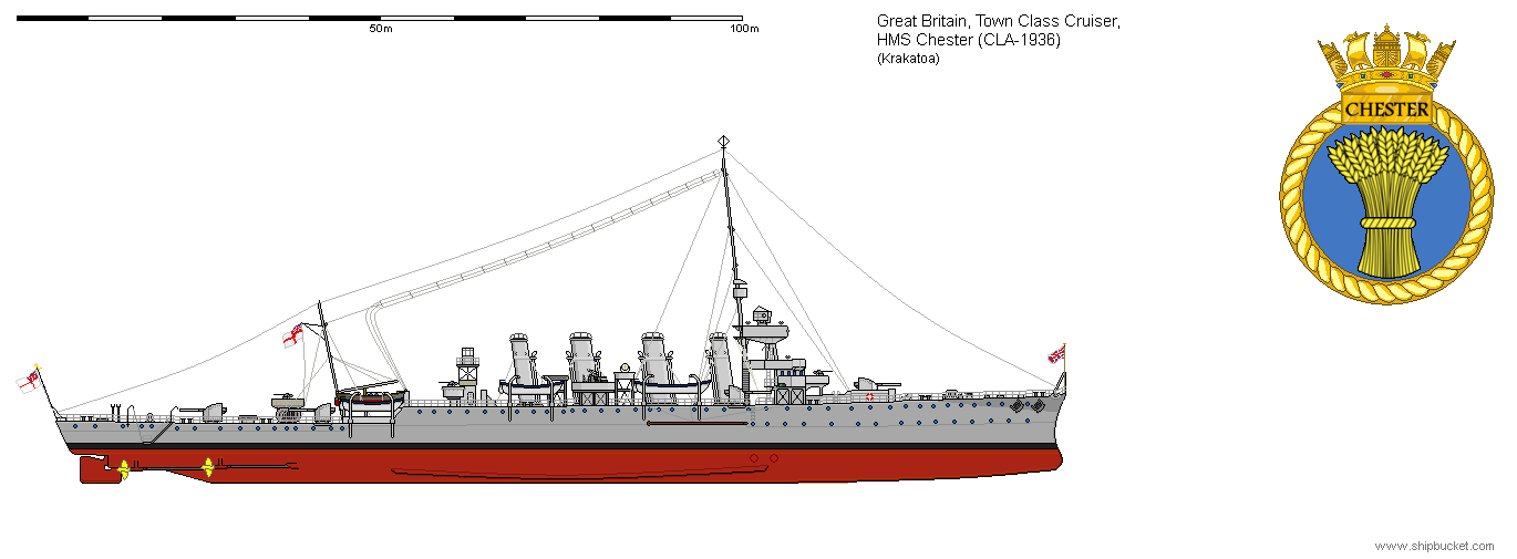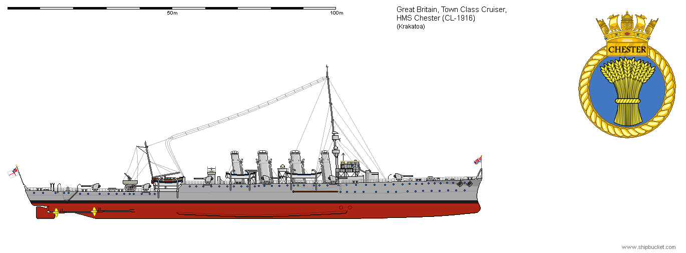 While the Chester was an offshoot of the Town Class cruiser lineage, it was