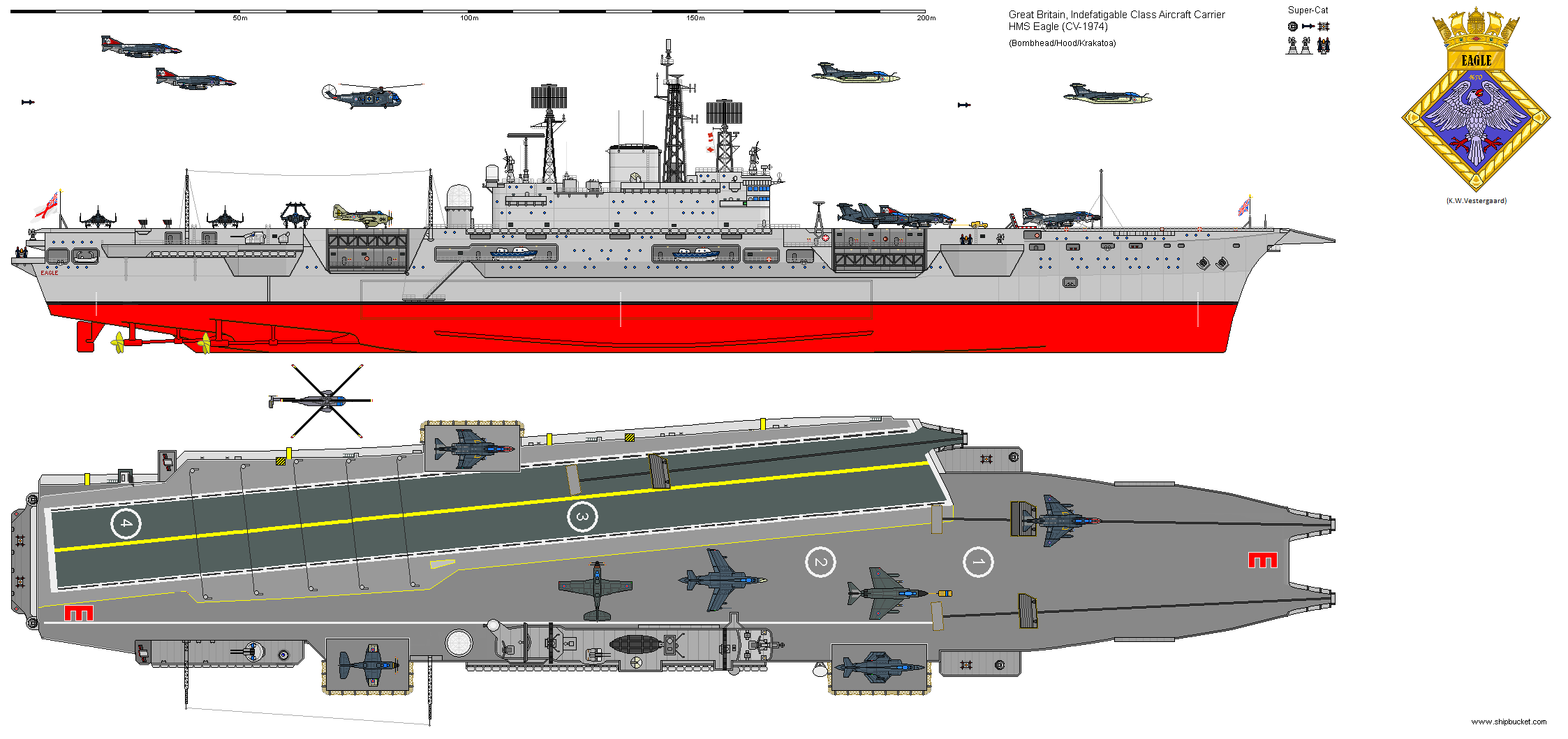 The drawing below pictures Eagle (and Ark Royal) after its 1970-74 refit to be