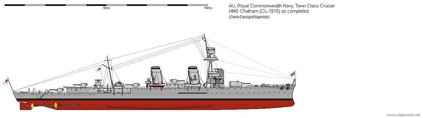 | Notes | Original gun layout Weymouth Dartmouth Falmouth Yarmouth Torquay Bristol Glasgow Gloucester Liverpool Newcastle New Bridge Structure Chatham Dublin Southampton Birmingham Lowestoft Nottingham Grafton Delhi Dunedin Durban Exeter Truro Bath Brighton Bradford Doncaster Durham Salisbury Oxford Hereford All turret ships Canterbury Cambridge Concord Cardiff Coventry Calcutta Cairo Carlisle Colombo Capetown Australis ships Sydney Melbourne Adelaide Perth Canberra |